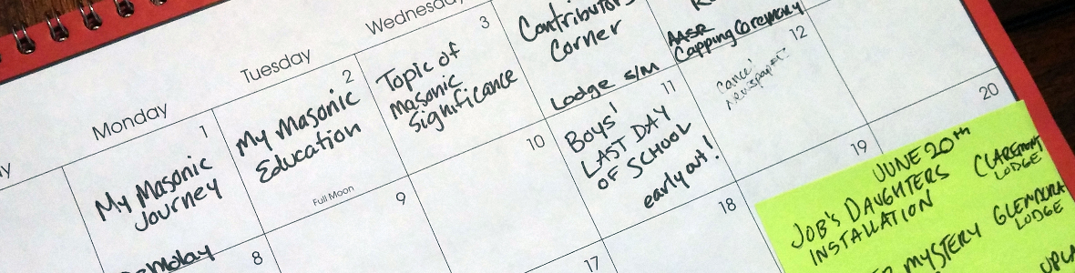 Meals are at 6:00pm and meetings begin at 7:00pm Stated meetings are the first Thursday of the month. For more information, drop us a line on our contact page.